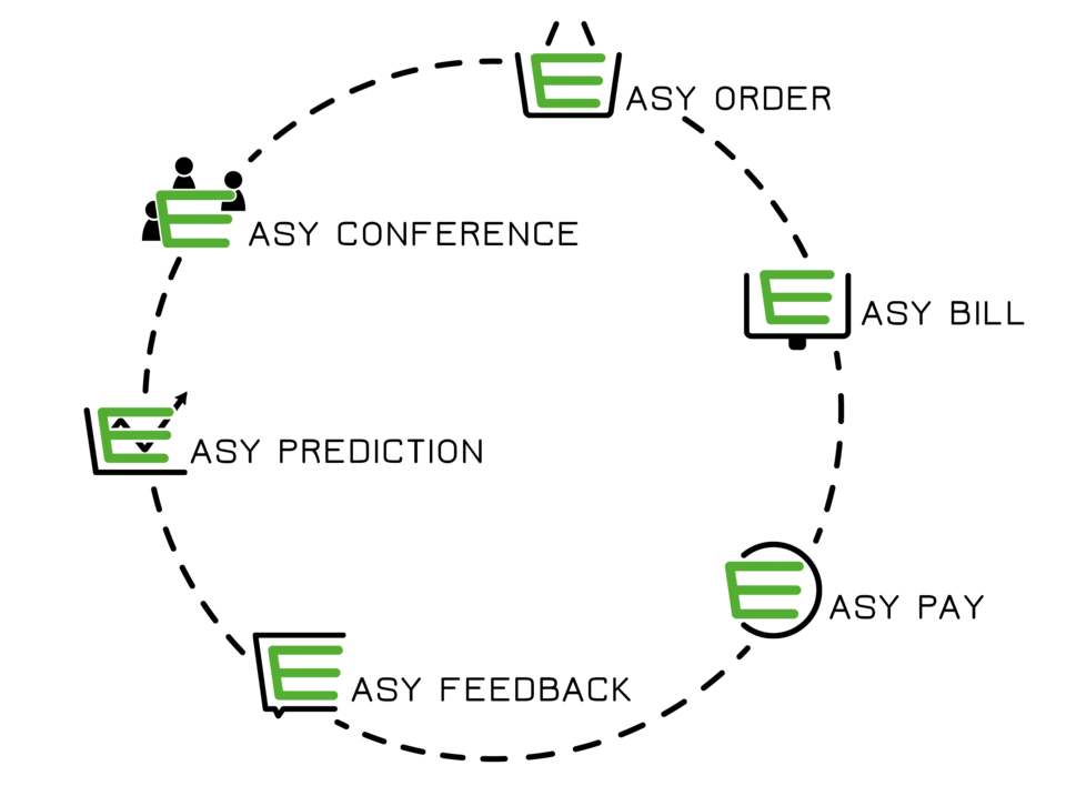 Das EASY SYSTEM besteht aus 6 Bausteinen, die Service und Kommunikation entlang unserer gesamten Dienstleistungen für unsere Kunden und Gäste einfach easy machen.
