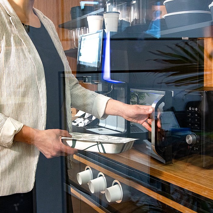 Bei Bedarf werden die frisch zubereiteten und gekühlten bzw. schockgefrosteten Speisen in der Mikrowelle schonend erwärmt.