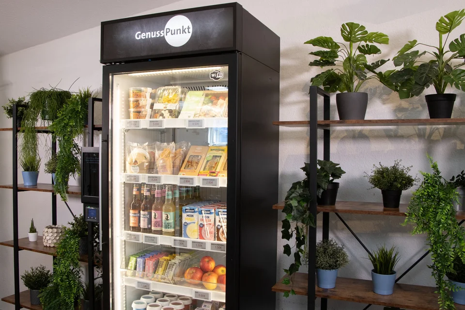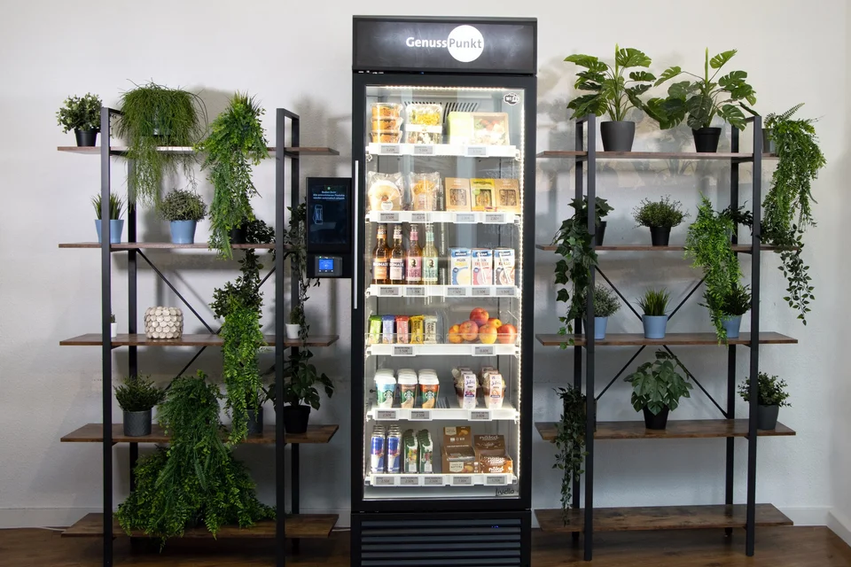 Der GenussPunkt besticht durch sein individuelles Sortiment und sein integriertes Display & Bezahlterminal. Zudem ist die Kühlschrank-Lösung steckfertig geeignet für jede Räumlichkeit.