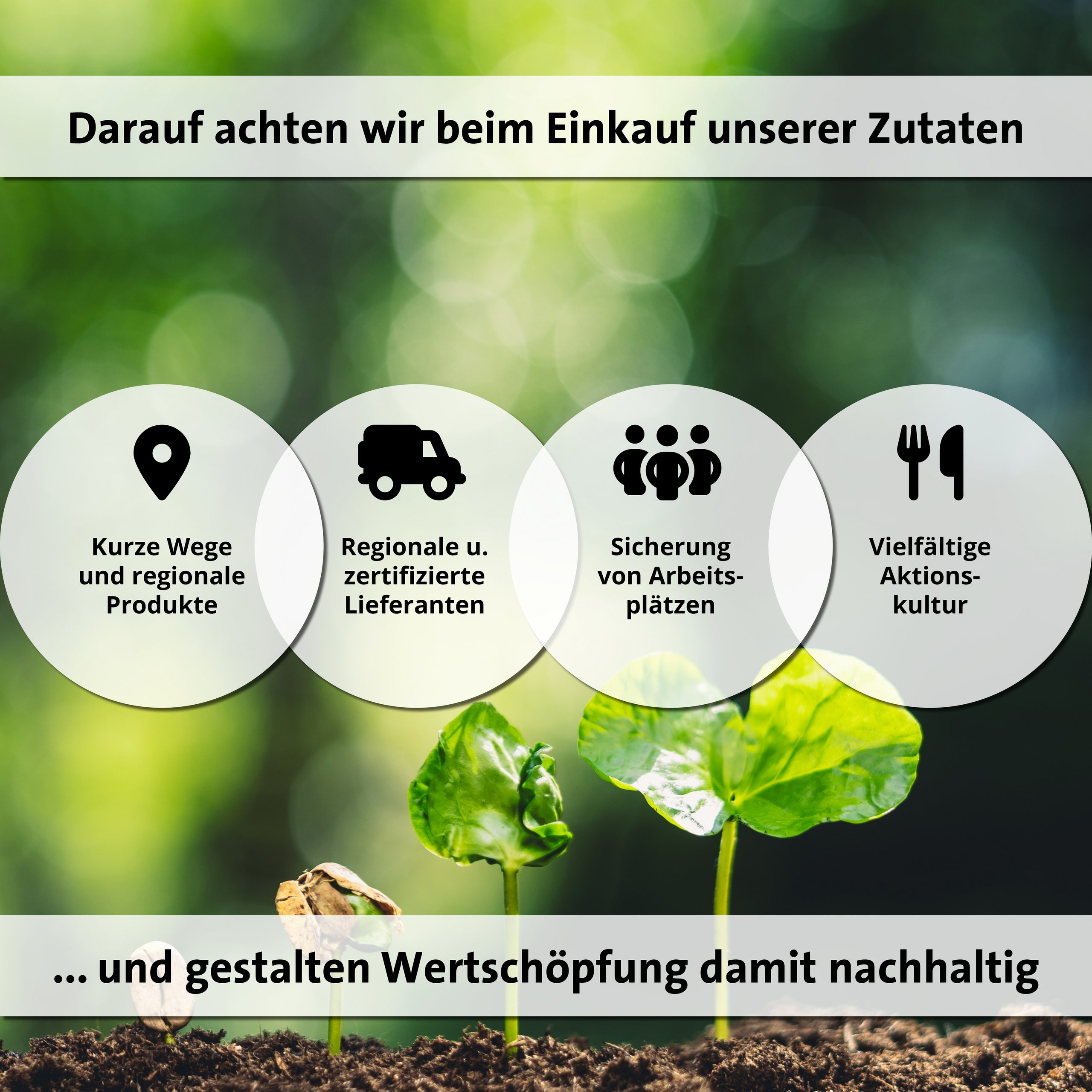 Daneben spielt die nachhaltige Beschaffung eine wichtige Rolle in unseren Betrieben. Wir setzen uns mit ganzer Kraft für beste Qualität und dauerhafte Wertschöpfung ein.