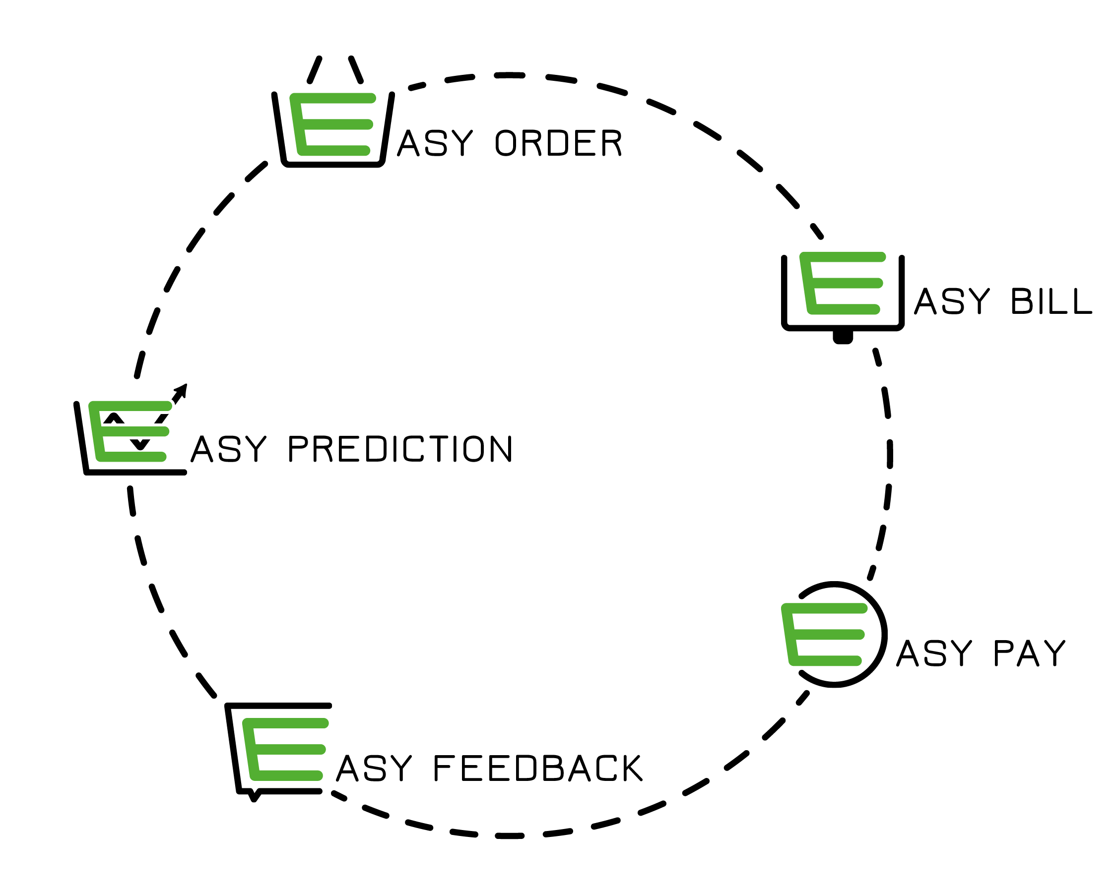 Das EASY SYSTEM besteht aus mehreren easy-Bausteinen, die den Service und die Kommunikation entlang der gesamten Dienstleistungen für die Kunden von apetito catering und ihre Gäste einfach easy machen und eine optimierte und nachhaltige Speisenplanung ermöglichen. Die easy-Bausteine bieten einen digitalen Komplettservice – von der Speisenplanung und Speisenbestellung über die Kassierung und Zahlungsabwicklung bis hin zur integrierten Feedbackmöglichkeit.